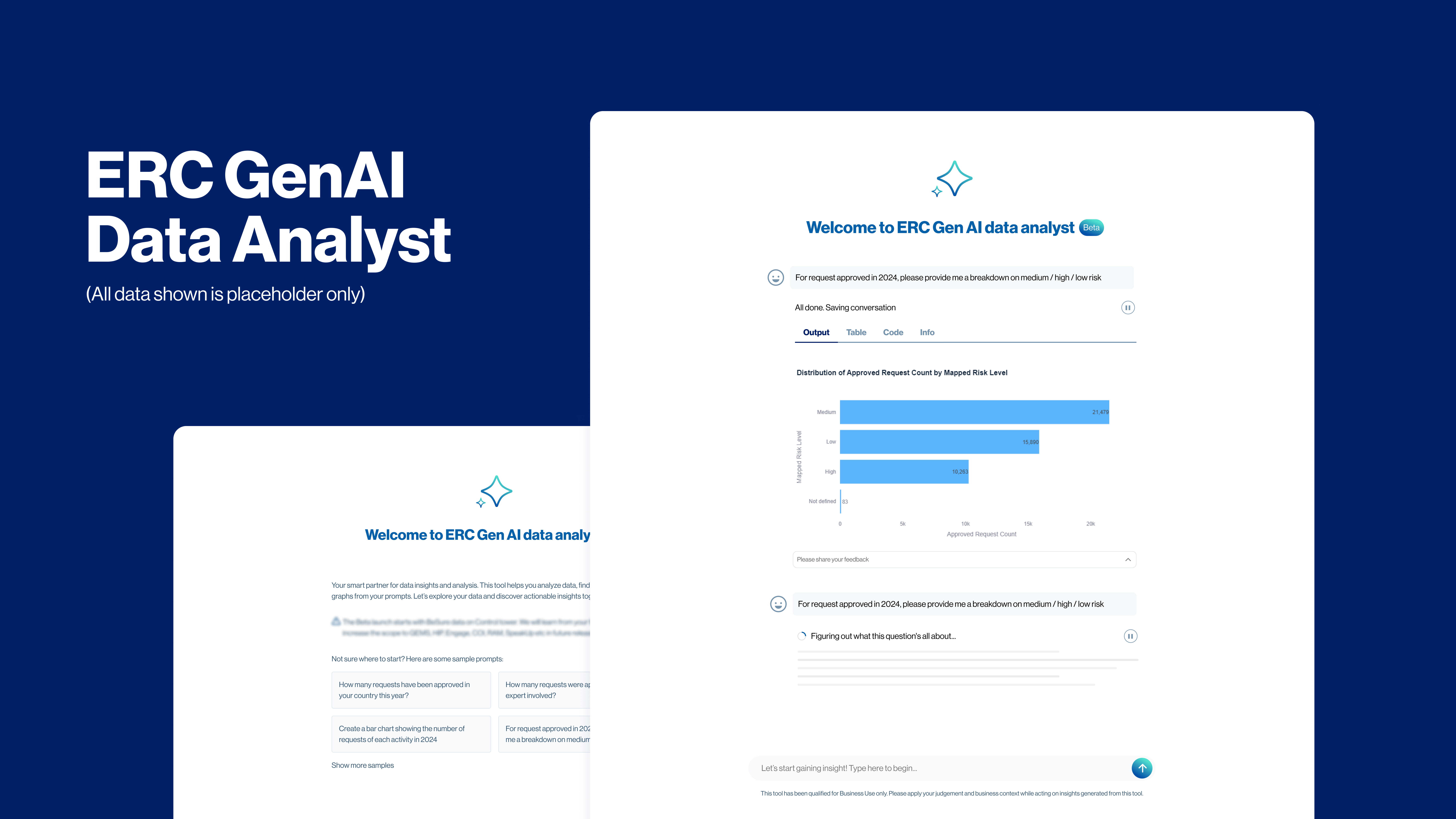 My role in this project was to lead the design team for products created in the Behavioral Science department, aiming to develop tools for monitoring and reporting risks across the various departments within ERC. This included spearheading the design of AI-driven solutions to enhance data accessibility and decision-making for internal stakeholders.
